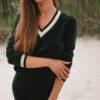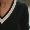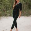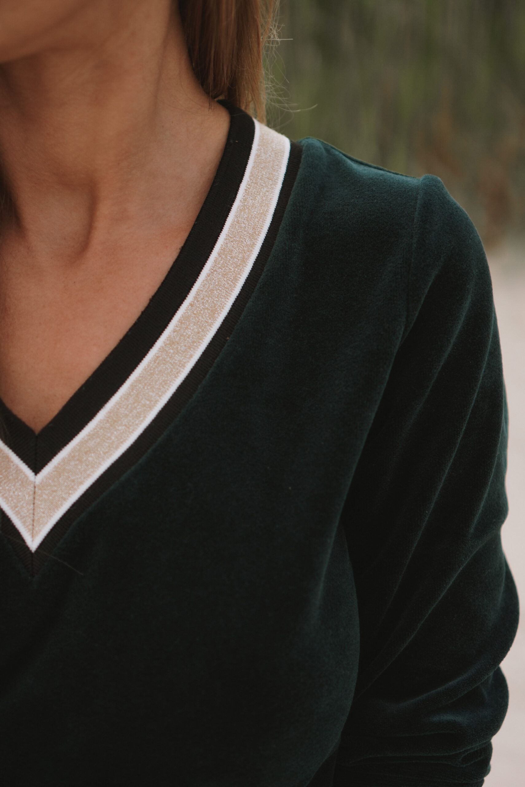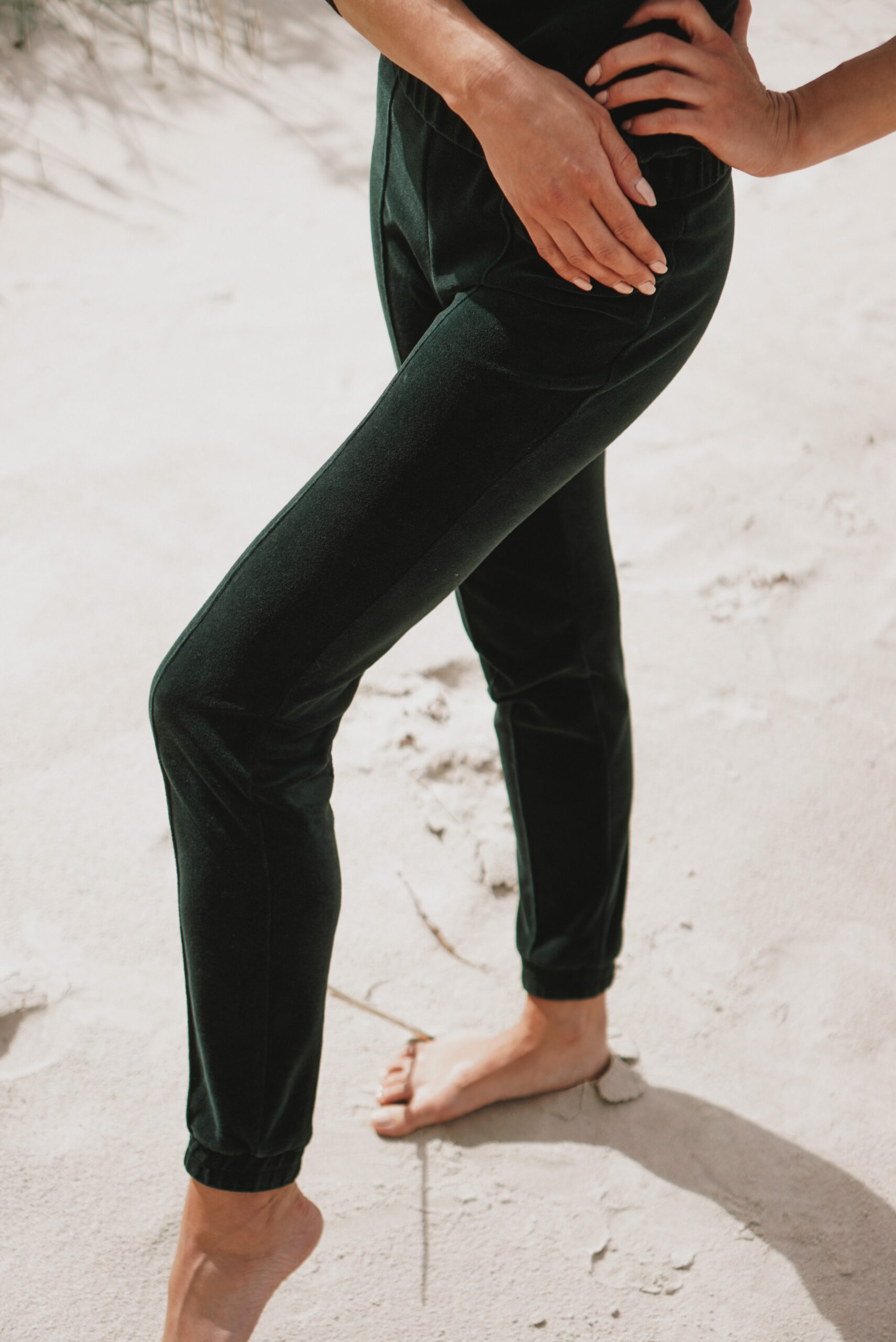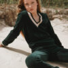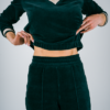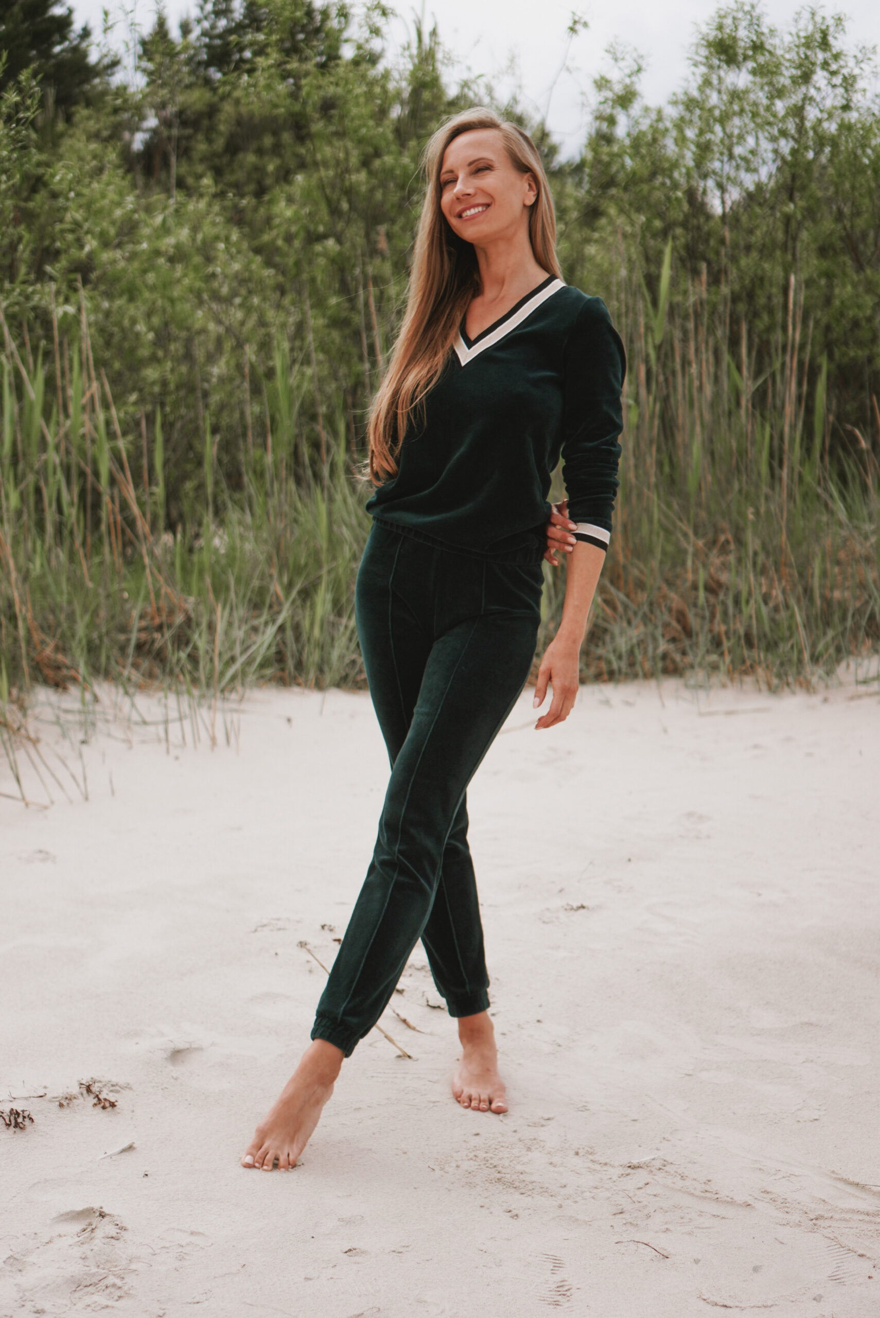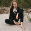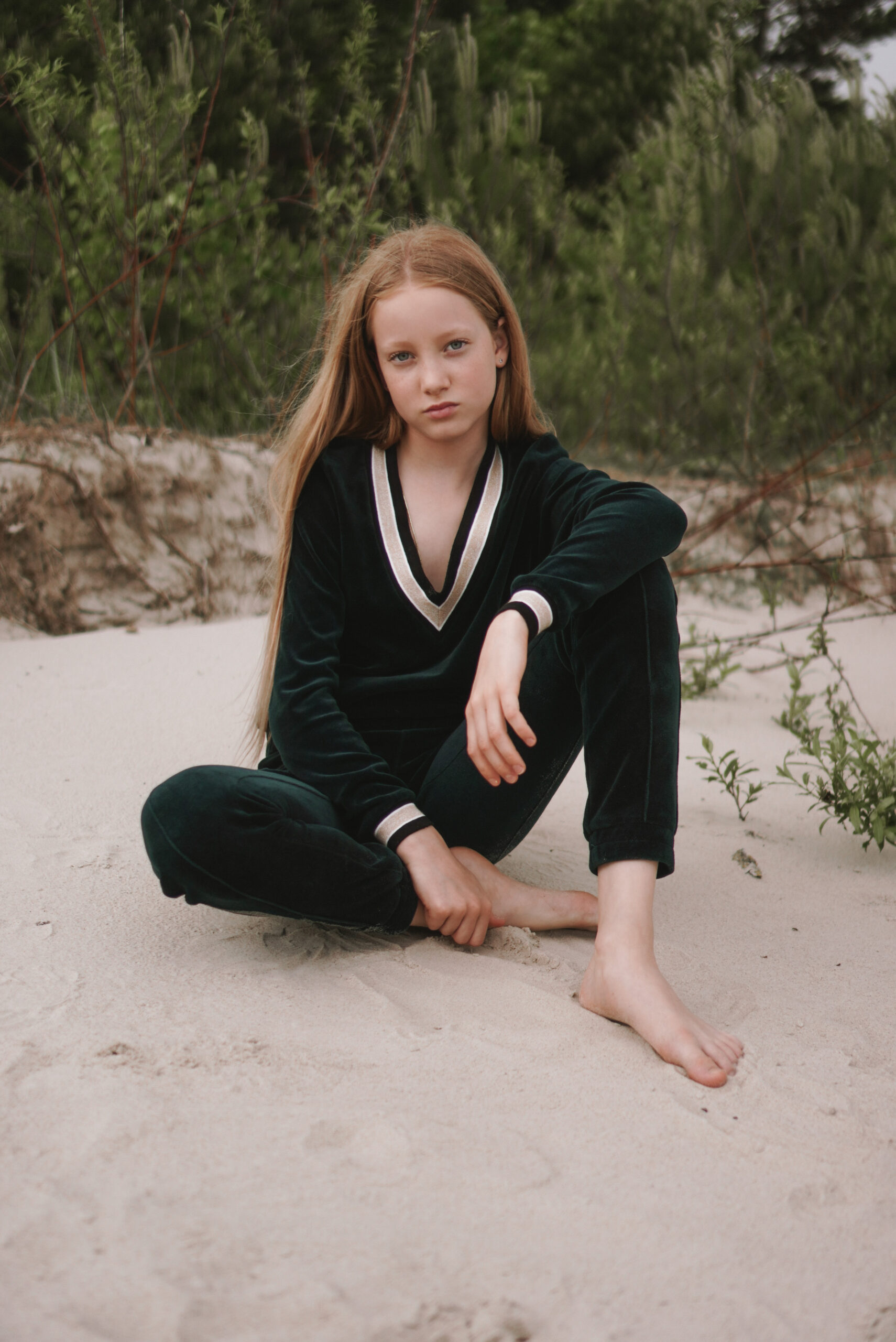 Šis elegantais un izsmalcinātais atpūtas apģērbu komplekts ir izgatavots no viegli kopjama kokvilnas samta. Tā dizains ir rūpīgi izstrādāts, lai tajā justos īpaši ērti un komforti. Komplektā ietilpst džemperis ar dekoratīvām, elastīgām manžetēm un bikses ar iestrādātām buktēm staru priekšpusē un mugurpusē. Šis samta kostīms būs īpaši piemērota izvēle, ja vēlies nedaudz siltuma un vienlaicīgi justies ērti un brīvi.